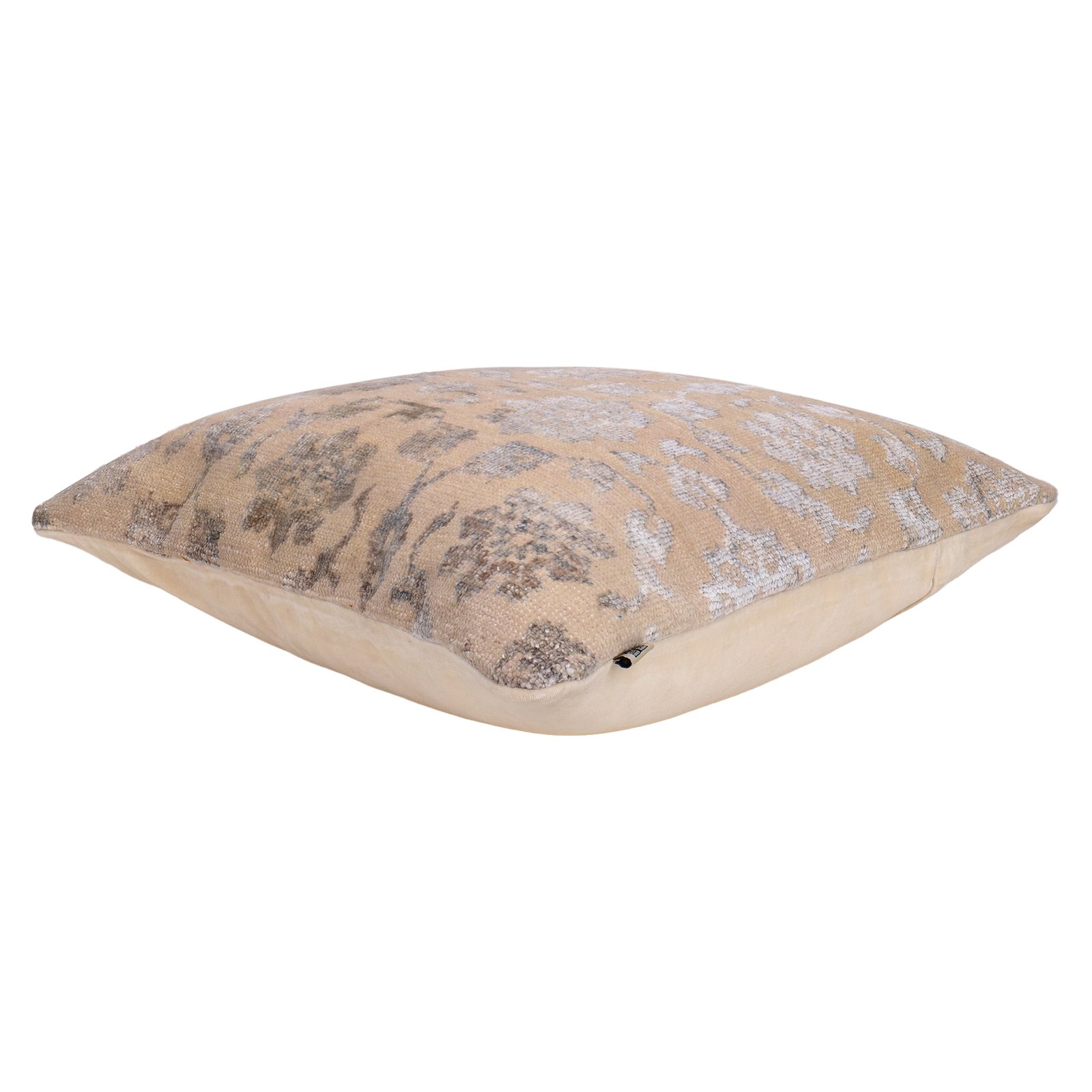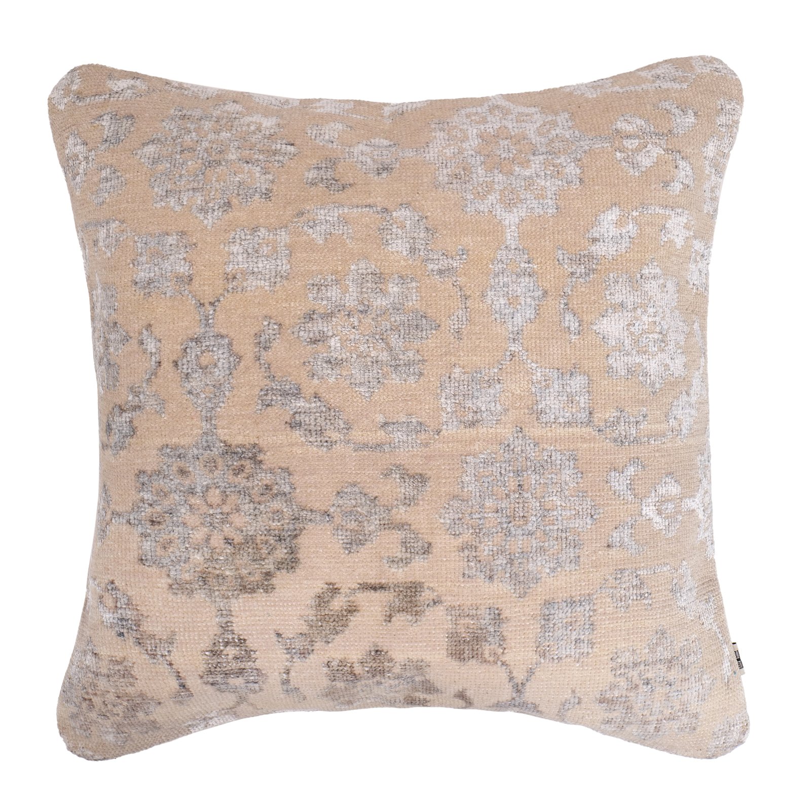 Fit for royalty, this exquisite oatmeal carpet cushion boasts an elegant silver sheen that adds a touch of regal sophistication to any space. The subtle shimmer of silk complements the rich texture of the oatmeal-coloured fabric, creating a luxurious and refined accent. This cushion combines opulent materials with timeless elegance, making it a standout piece in any decor.