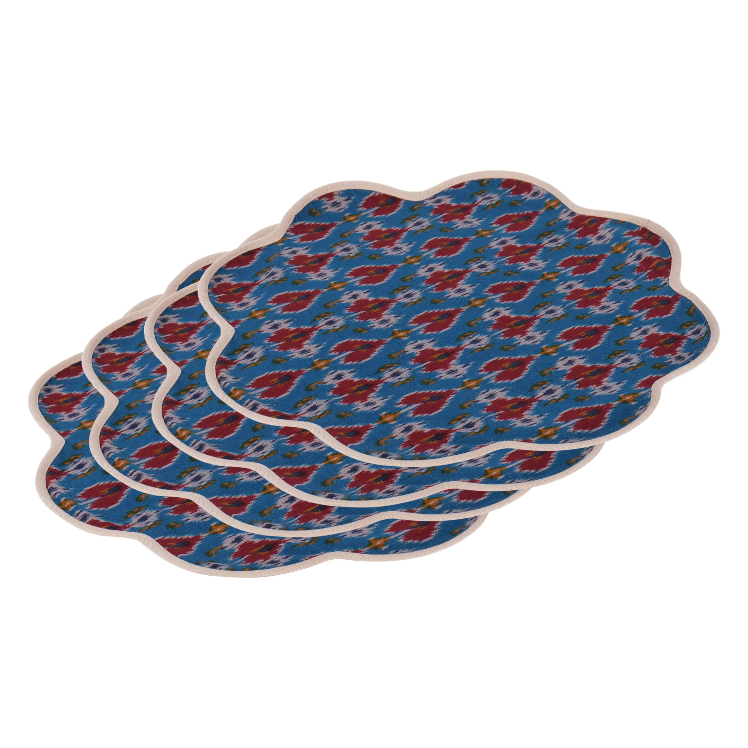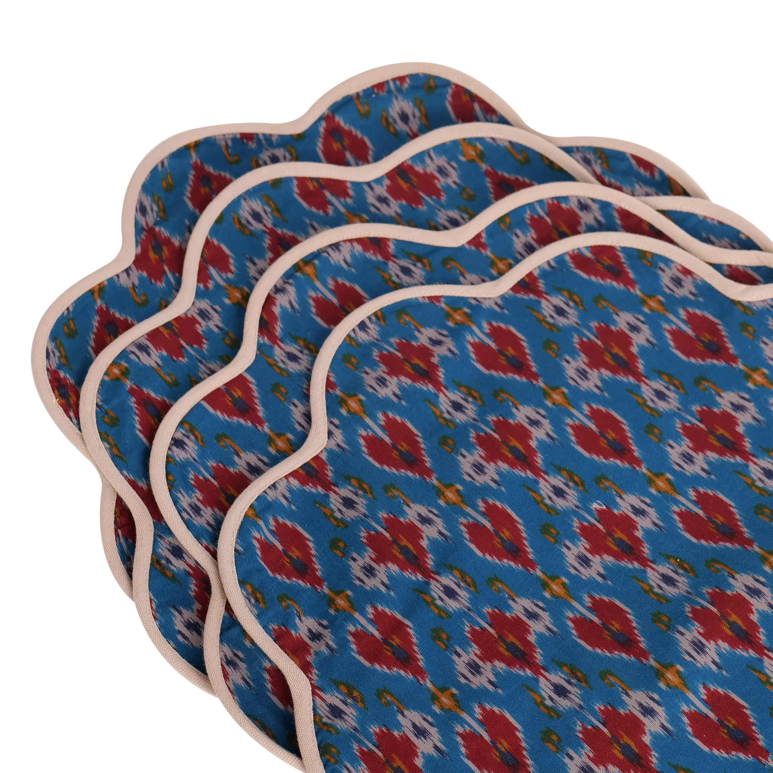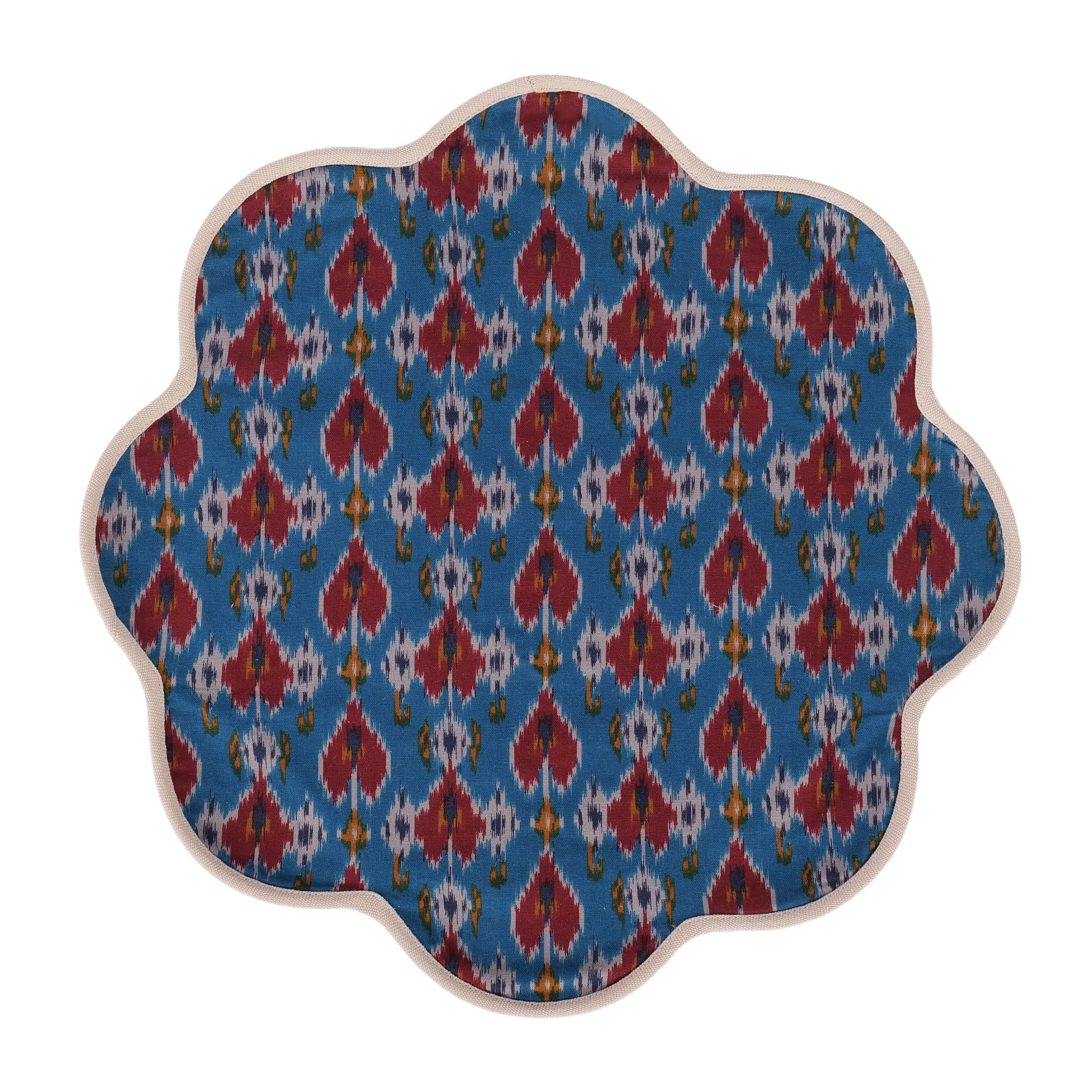 Elevate everyday dining with these blue ikkat cotton placemats, featuring sculpted scalloped edges and a rich, artisanal pattern. The bold hue and handloom-inspired design offer a sophisticated nod to tradition—perfect for curating a space that feels both refined and welcoming.