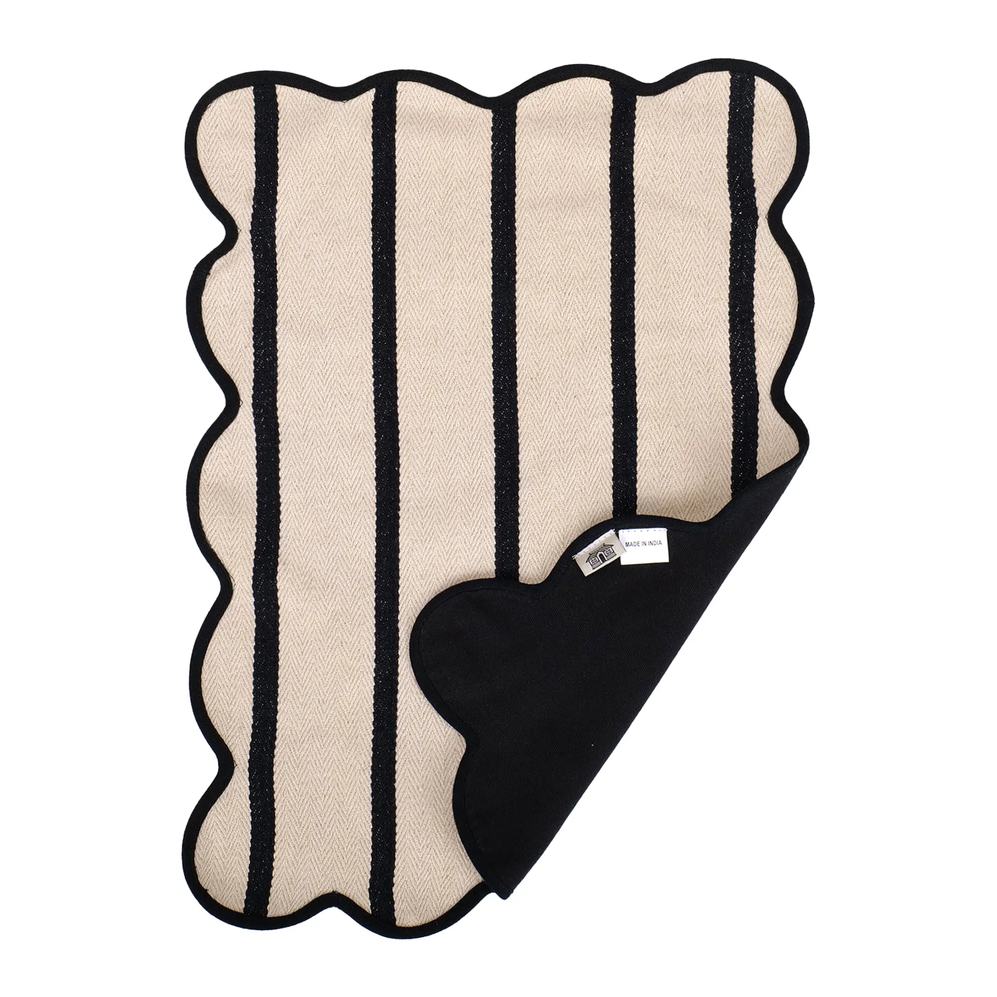 How about scallops and stripes for your table mats? An interesting combination that looks perfect for any occasion, from casual dinners to formal gatherings. Creating a visually striking and modern design, these mats offer both elegance and durability.